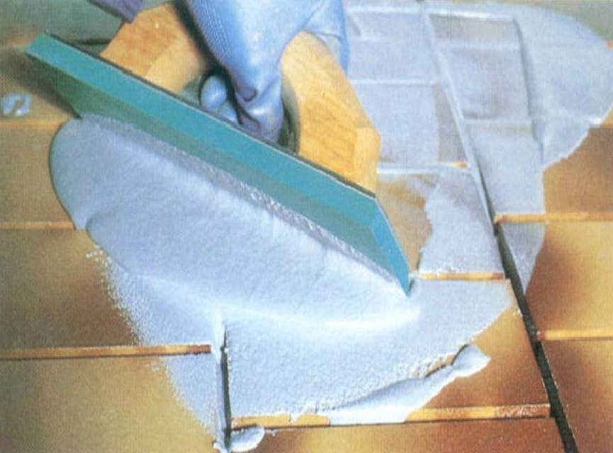- Using an appropriate grouting float, diagonally press material into spaces with pressure to insure complete filling of the joint. Remove excess material with edge of the float.