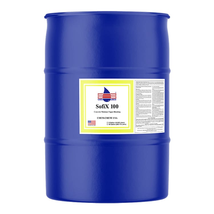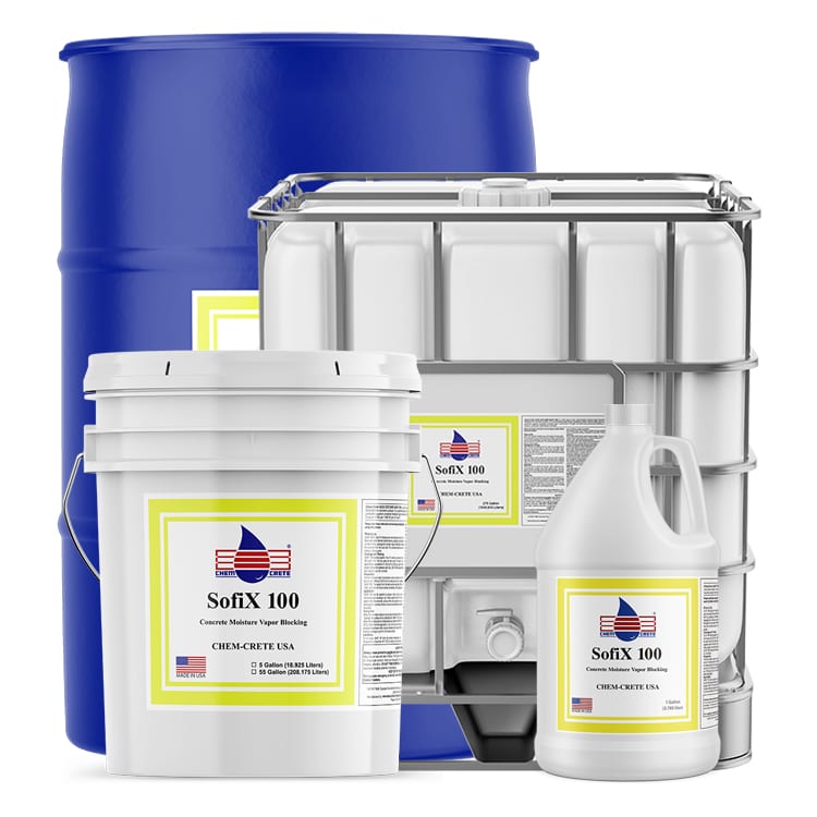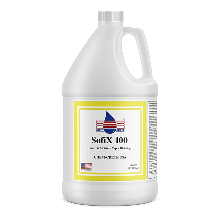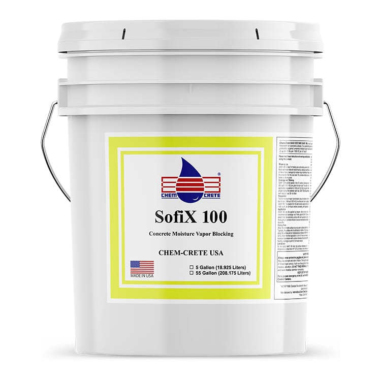 CHEM-CRETE® SOFIX® CCC® 100 is a unique, water-based blend of catalyzed chemicals that significantly reduces water vapor and moisture transmission through concrete and masonry structures. It is suitable for transmission rates up to 12 Lbs per 1000 ft2, per 24 hours (ASTM F1869).