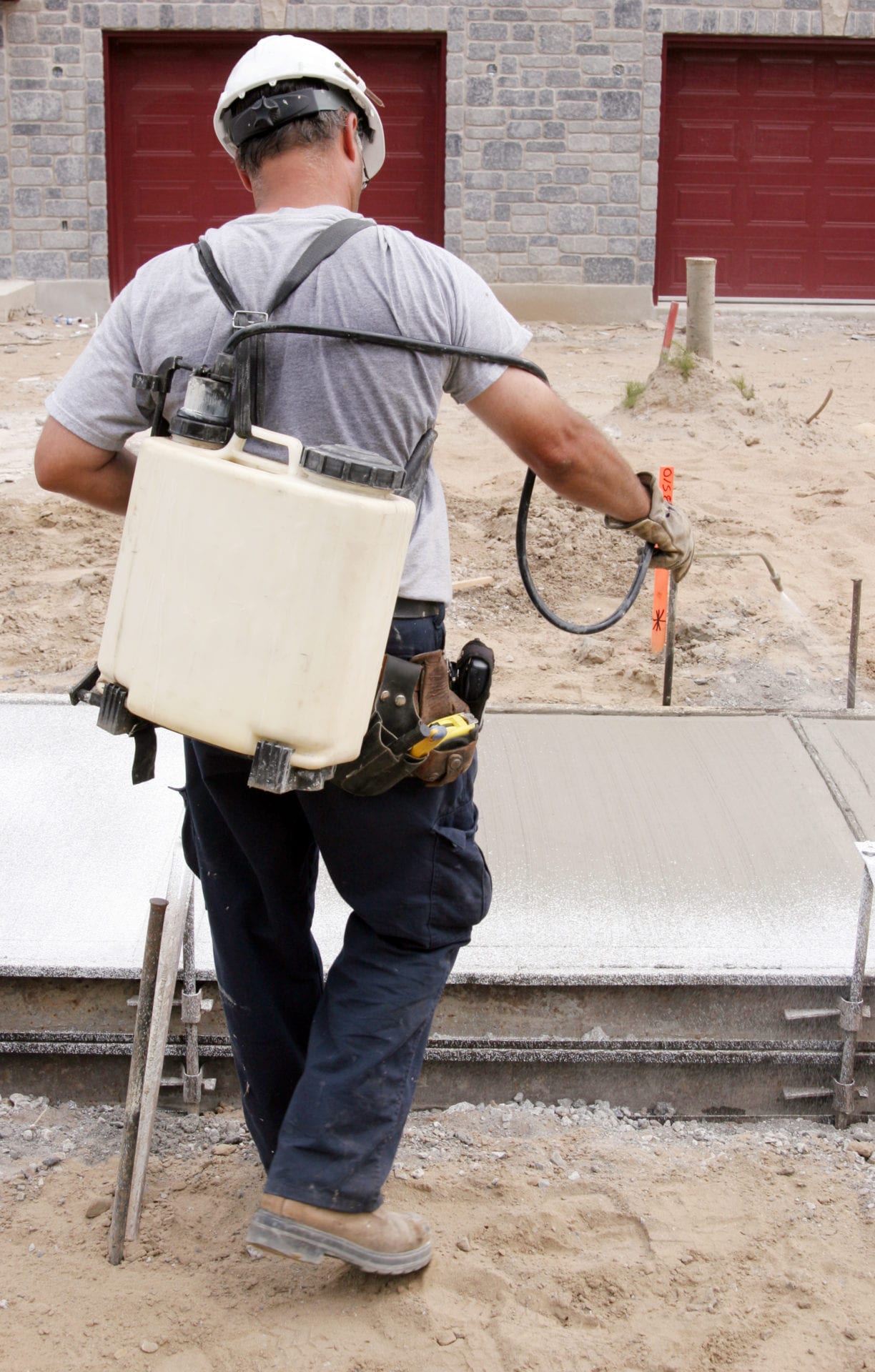 Preparation: as soon as the concrete assembly has reached the set stage and the finishing is completed, make sure the surfaces of the concrete assembly are free from ponded water and proceed to application.